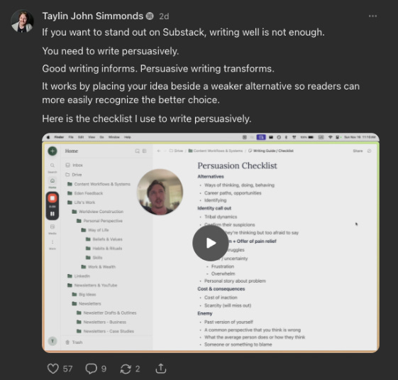 (Optional) Do one collaboration every two weeks to accelerate your growth and expand your readership faster—Substack live, podcast, recommendations, cross-promotion.