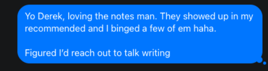 Read the person’s work first, then send a genuine compliment about something you enjoyed or learned from in their latest post or Note.